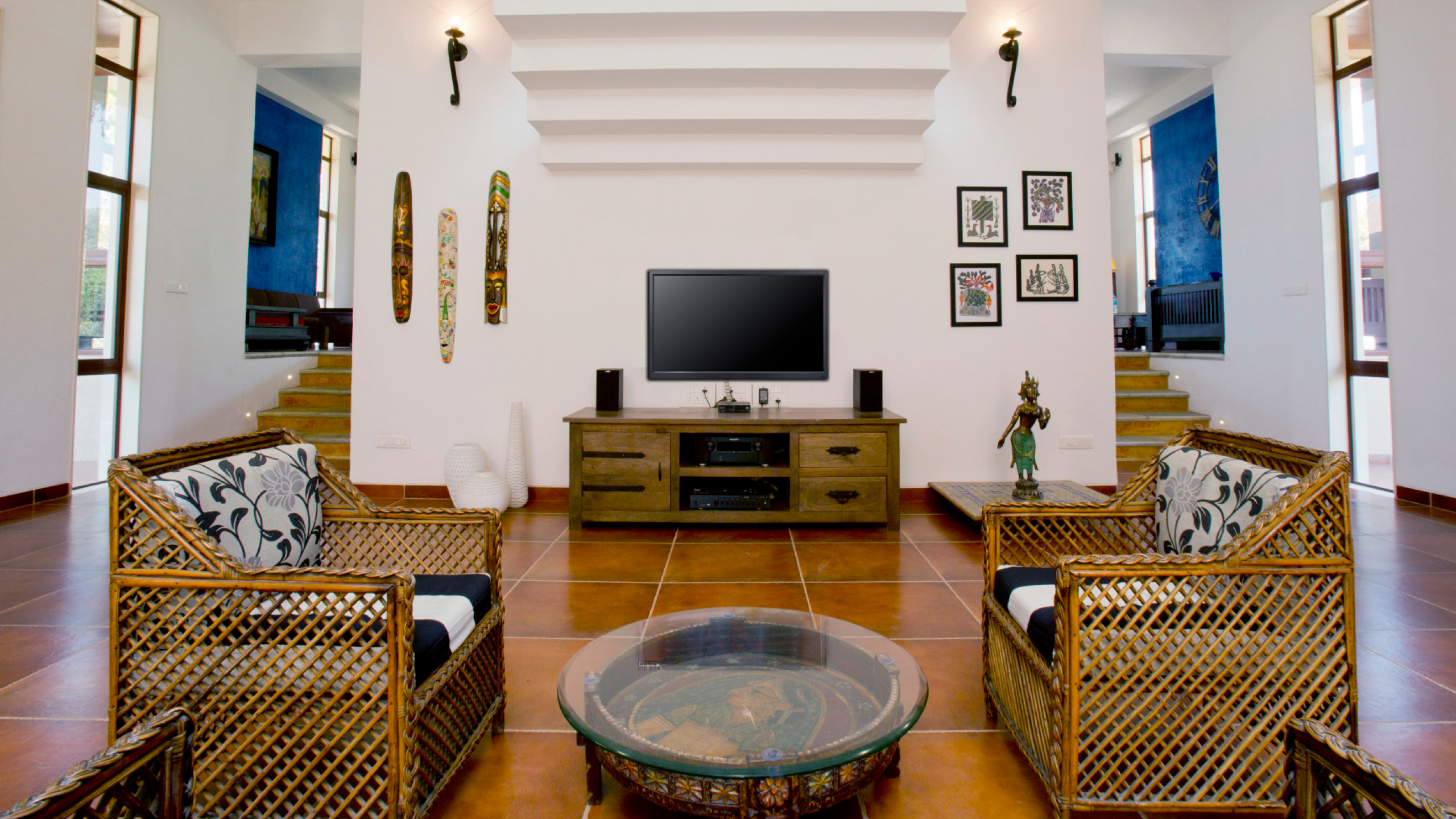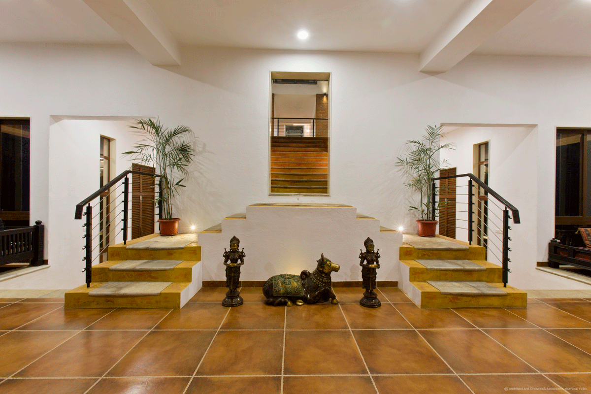 Inspired by the vibrant essence of South Indian tradition, the design concept for this residence revolved around the colorful and aromatic presence of spices, which are integral to South Indian homes. Traditional South Indian aesthetics—marked by warm wooden furniture, cultural motifs, and handcrafted simplicity—formed the foundation of the visual language. The goal was to create an open, vibrant, and minimalist space that was still rich with cultural meaning. Key traditional elements such as a wooden swing, antique pillars, idols, and handcrafted furniture were introduced to transform a minimalist shell into a soulful and engaging living environment. The spatial organization also drew inspiration from the five elements of nature—Earth, Space, Water, Air, and Fire—each interpreted through the thoughtful use of materials and layout to enhance the sensory and emotional experience of the home.